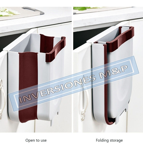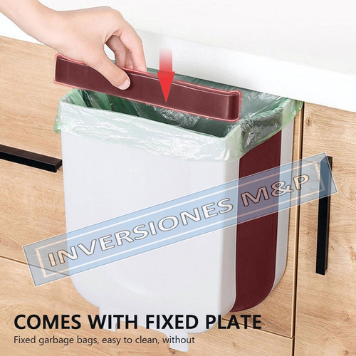 puede soportar más de 8 kg de peso. El cubo de basura plegable se cuelga sobre la puerta .