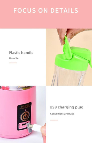 – Ideal para la salud ya puedes preparar donde quiera que estés unos deliciosos Smoothie o Botados Proteicos Con la Licuadora Recargable único diseño de Carga USB Verdaderamente portátil y convenientemente solo debes mezclar lo que quieras frutas etc y beber de la misma botella.