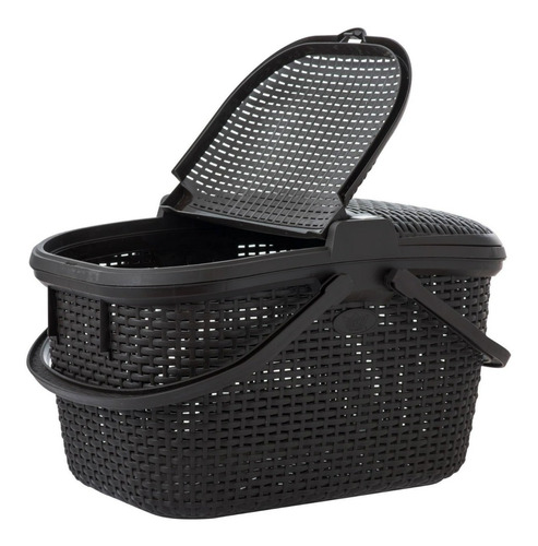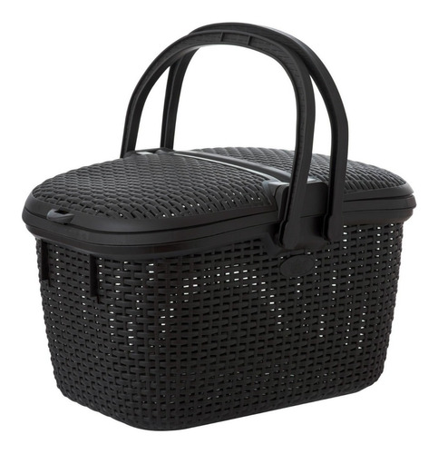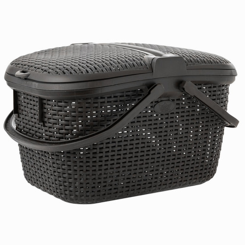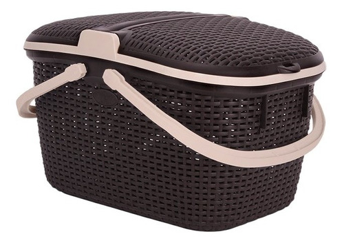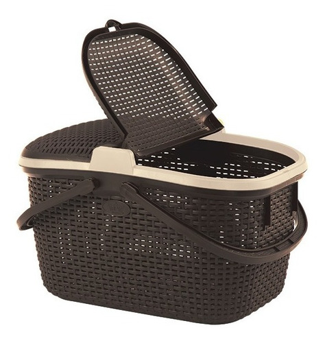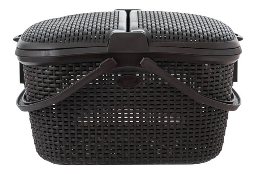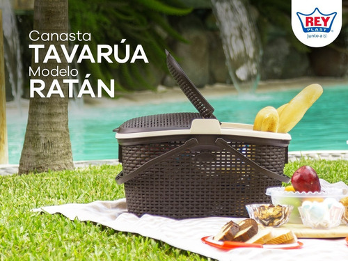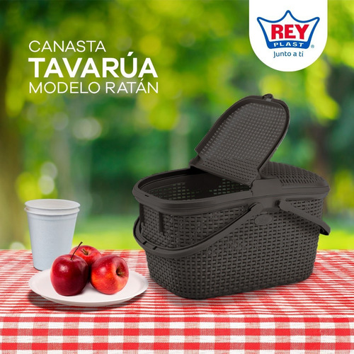 Esta Canasta tipo ratán, de resina, modelo Tavarua y marca Reyplast, será una excelente aliada si los fines de semana te gusta salir de picnic con la familia y los amigos, y disfrutar al aire libre de la naturaleza y los bellos paisajes que nos ofrece. Esto, porque en ella podrás llevar jugos, bebidas, sándwiches, fruta y lo que te más te guste para que hagas de ese momento algo más sabroso y además con mucho estilo, ya que su color café oscuro y su tejido tipo ratán hace que su look sea sofisticado y elegante.