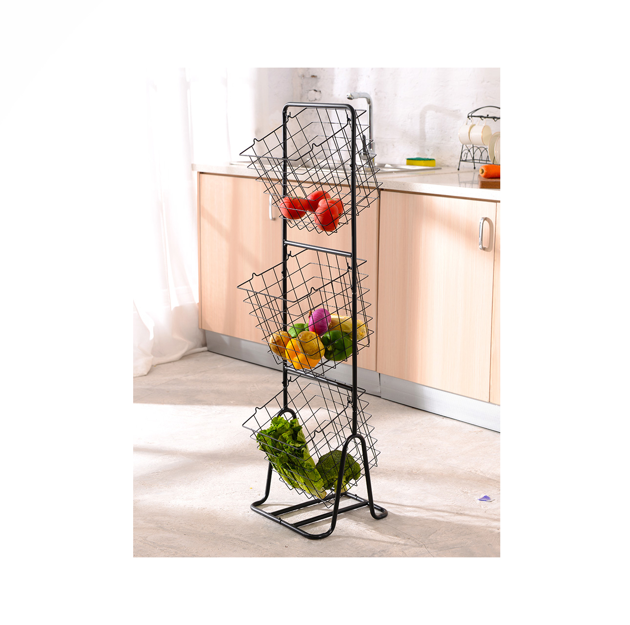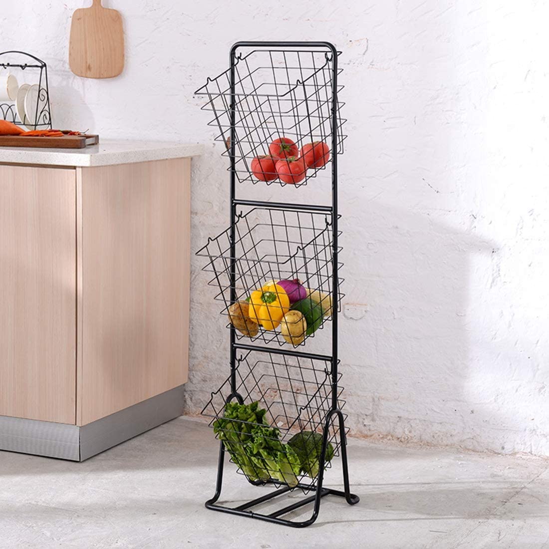 El canasto Multiusos de 3 niveles es la solución de almacenamiento perfecta en la cocina/Baño/Habitación/ETC. Simplemente almacene sus productos (frutas y verduras), utensilios de cocina, toallas, productos de limpieza y más en contenedores de almacenamiento colgantes.