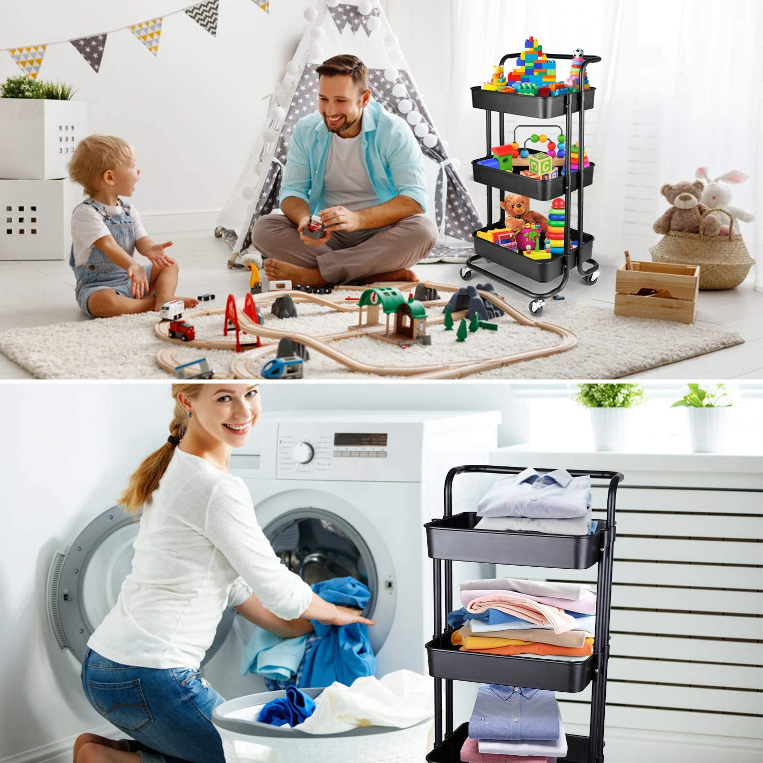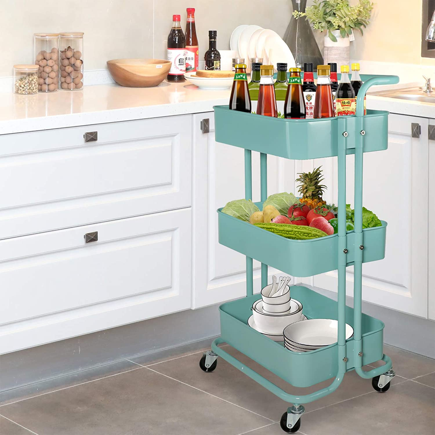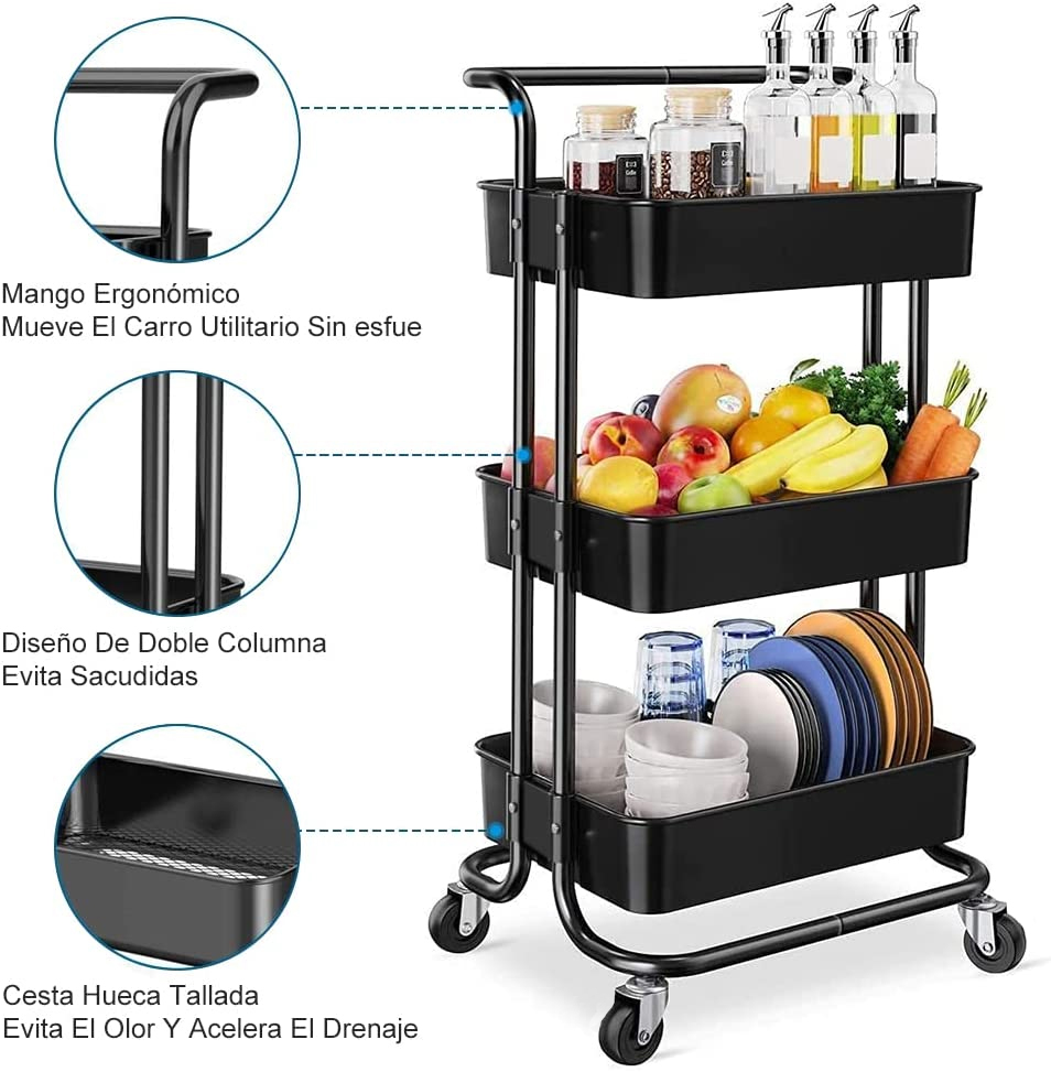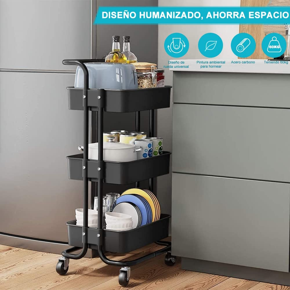 Carro Estante Organizador Multiuso Con 3 Niveles Y Ruedas