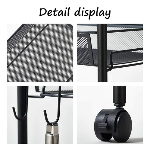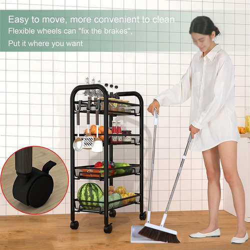 El carro utilitario rodante de 4 niveles crea un ambiente moderno y distintivo y agrega más espacio de trabajo a su hogar. Las 4 ruedas giratorias libres permiten una fácil movilidad según lo necesite mientras protegen el piso contra rasguños. La capacidad de carga total puede alcanzar hasta60kg y es ideal para contener una amplia variedad de artículos.