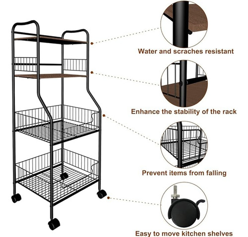 El carro utilitario rodante de 4 niveles crea un ambiente moderno y distintivo y agrega más espacio de trabajo a su hogar. Las 4 ruedas giratorias libres permiten una fácil movilidad según lo necesite mientras protegen el piso contra rasguños. La capacidad de carga total puede alcanzar hasta60kg y es ideal para contener una amplia variedad de artículos.