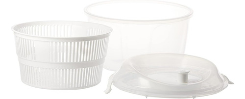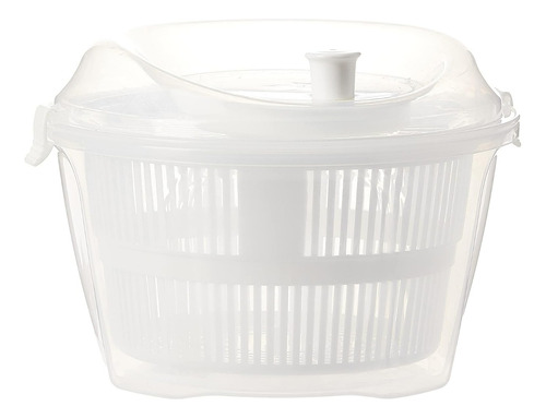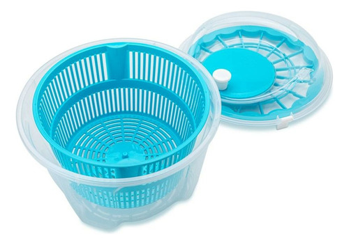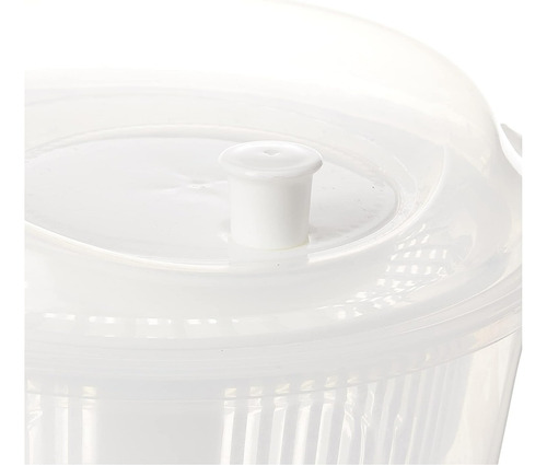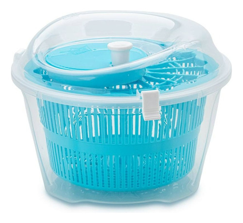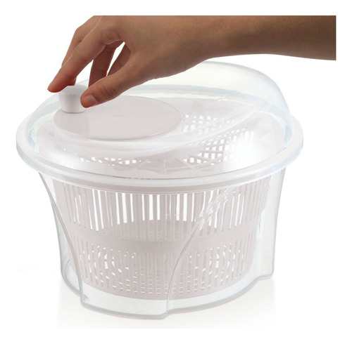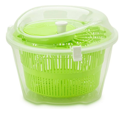 Escurridor con práctico sistema de acción centrífuga que permite separar el exceso de agua de los vegetales. Incluye una tapa con broches para una mejor manipulación.
