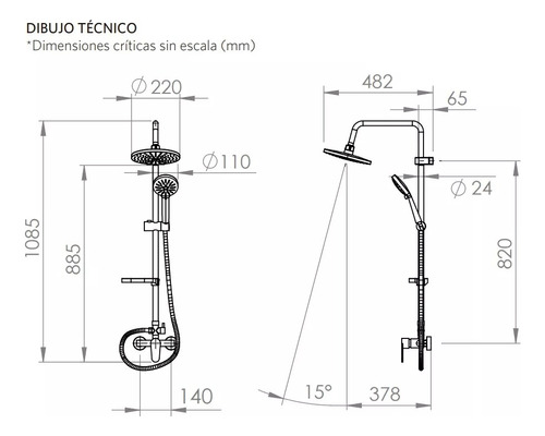 Este producto incluye un monomando de ducha con un cartucho de 35 mm, proporcionando un control preciso del flujo y la temperatura del agua.