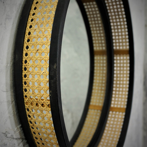 Este encantador espejo combina la elegancia del metal con la calidez del mimbre, creando una pieza única que añadirá estilo a cualquier habitación. Su diseño circular y los detalles lo convierten en un punto focal encantador, perfecto para salas de estar, dormitorios o pasillos. Crea un ambiente acogedor y sofisticado con este espejo que fusiona materiales naturales y modernos, añadiendo un toque de distinción a tu decoración.