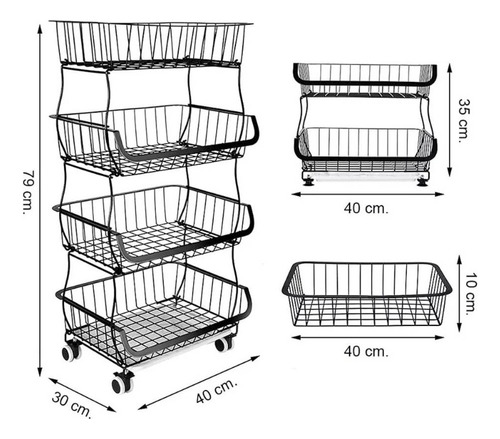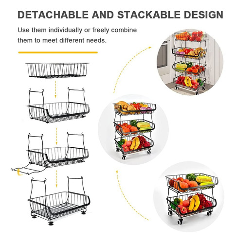 Construcción robusta: 4 cestas de metal duradero de alta calidad, con pintura negra con acabado antioxidante, esta cesta de almacenamiento de metal funcional satisfará tus necesidades de almacenamiento a largo plazo. puede mover cómodamente. Dos de las ruedas Tienen Bloqueo, para mantener el organizador de almacenamiento seguro en su lugar cuando sea necesario.