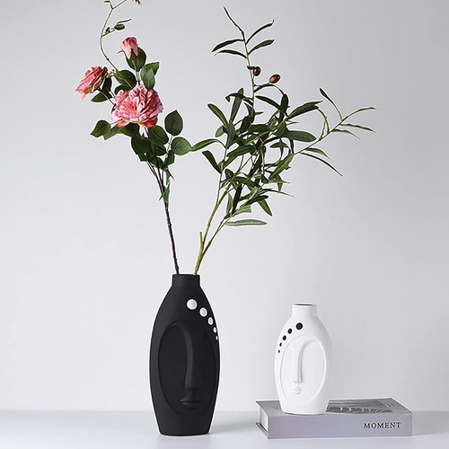 Toque de originalidad para tu hogar. Florero jarrón macetero de cerámica con cara en negro. Ideal para resaltar plantas o como pieza decorativa única. ¡Envío rápido y seguro! Decoración Única