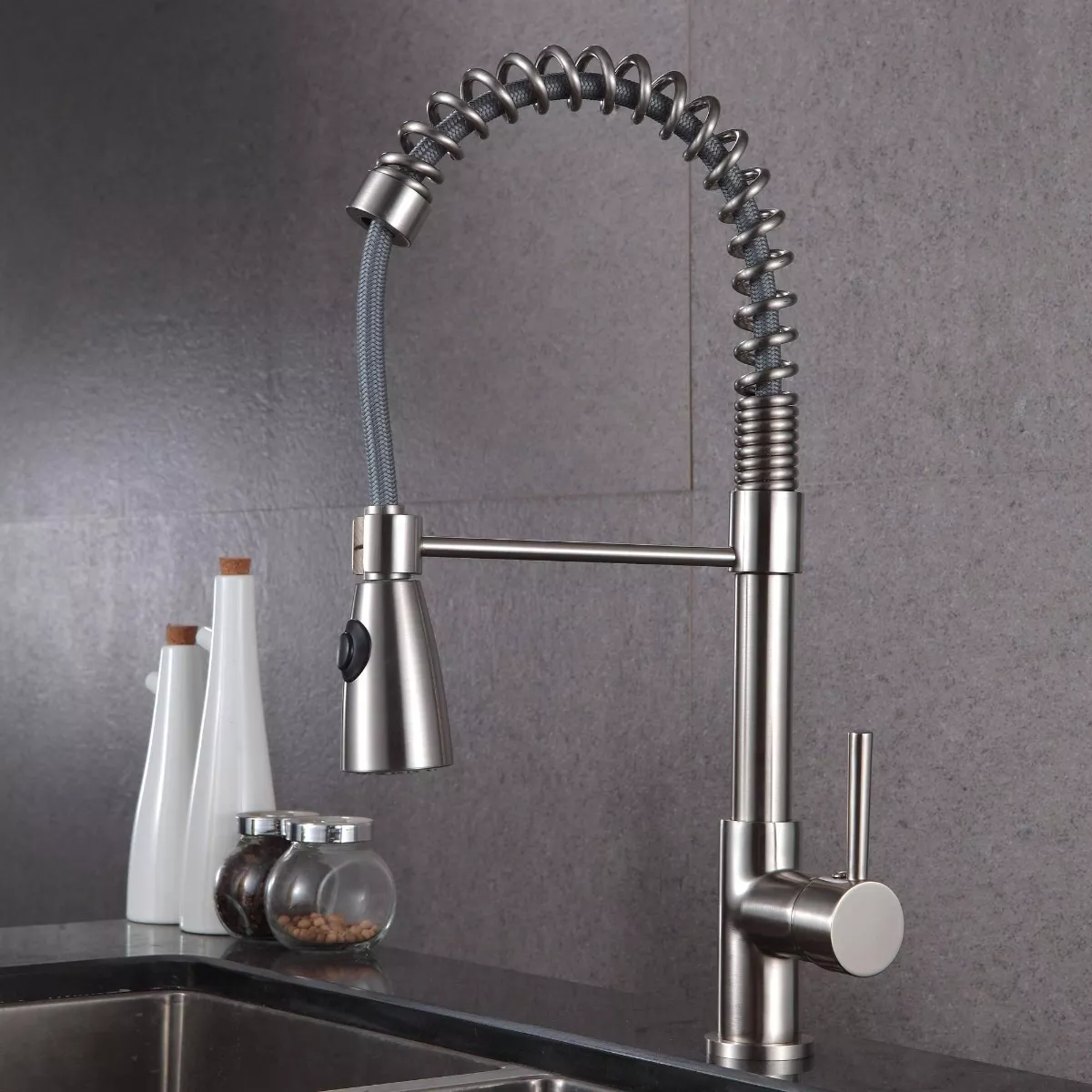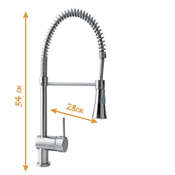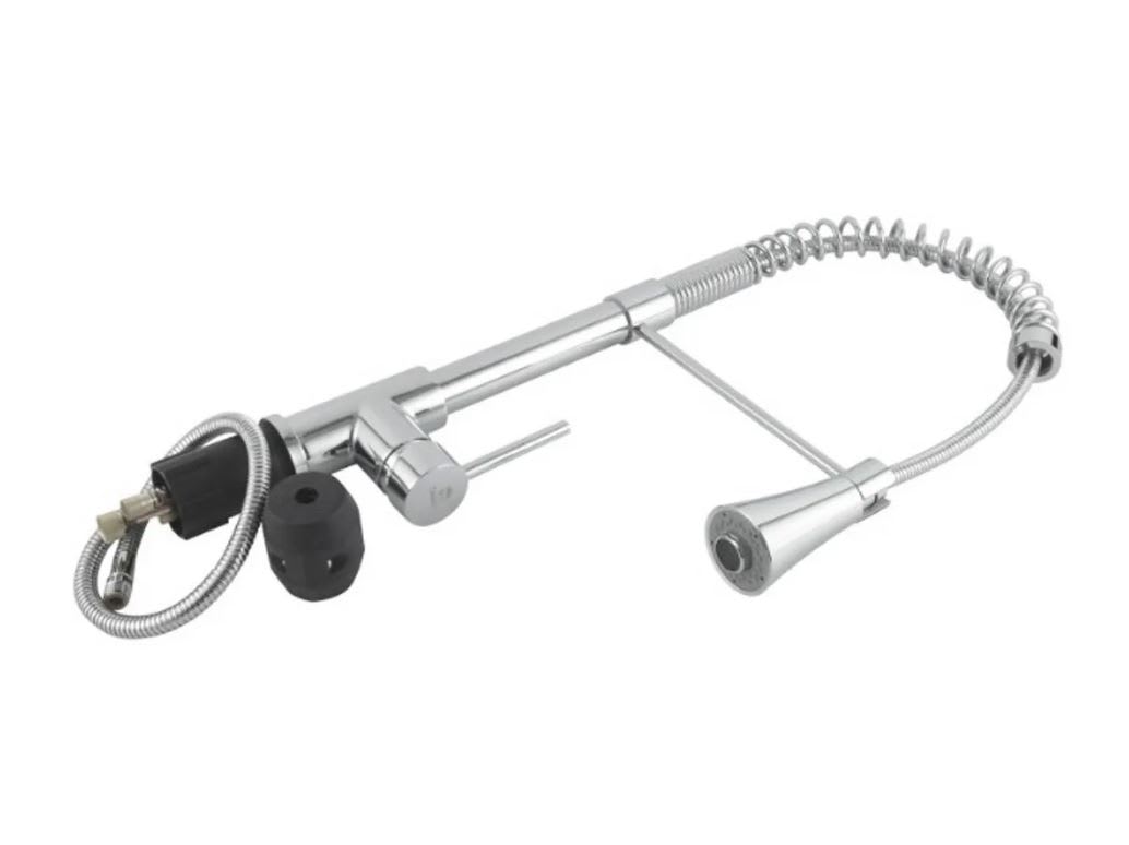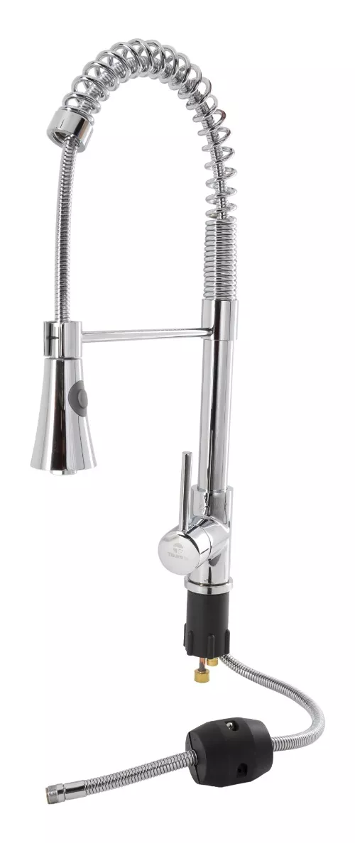 Manguera Extraíble: Incorpora una manguera extensible y direccionable con resorte de acero inoxidable, facilitando la limpieza de utensilios y áreas de difícil acceso.