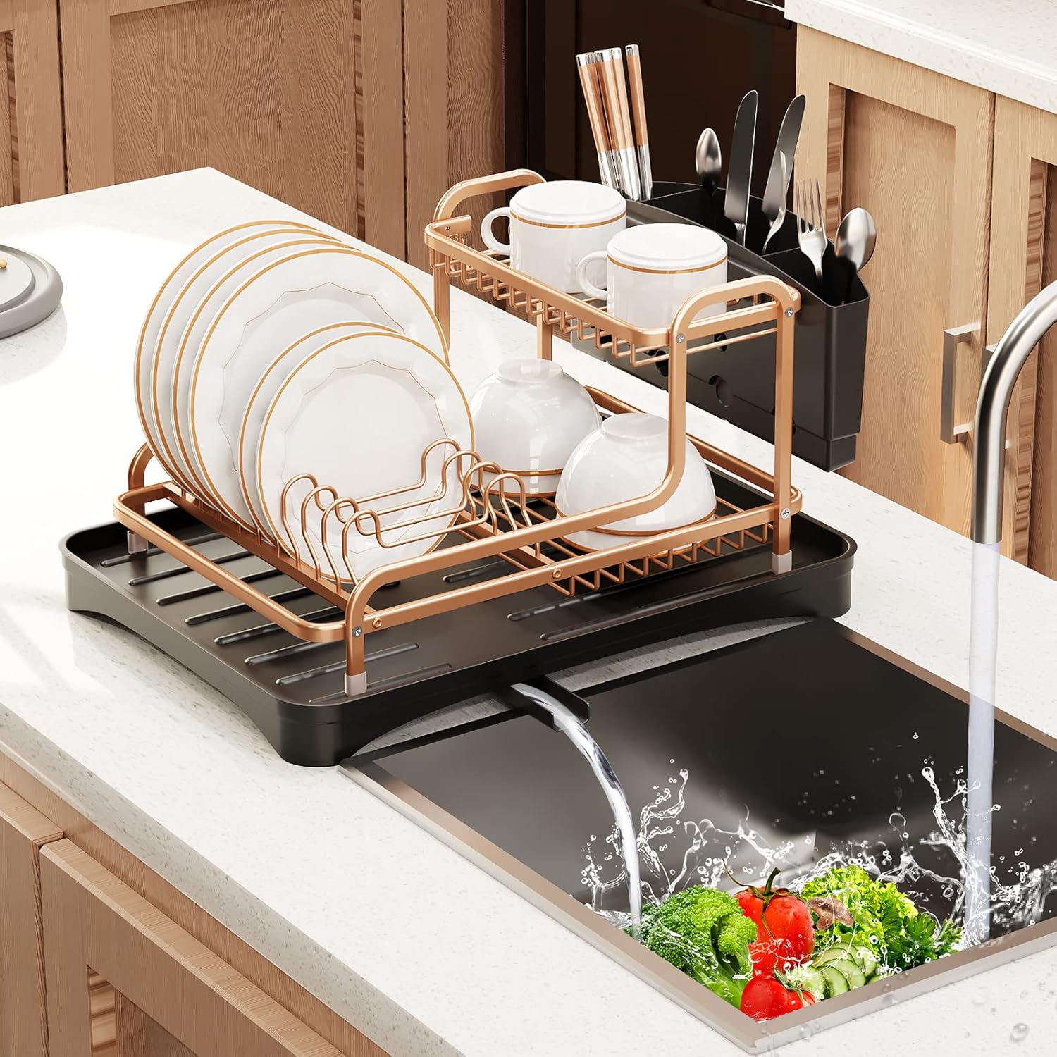 Es ideal para acomodar y escurrir tus utensilios de cocina de la mejor manera, organizada y segura, ya que tiene el tamaño perfecto, y por supuesto te permite ahorrar espacio, además de tener los espacios perfectos para acomodar y escurrir tus accesorios de cocina, tales como platos, tazas, cubiertos y vasos ya que tiene ganchos extras para ellos.