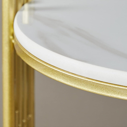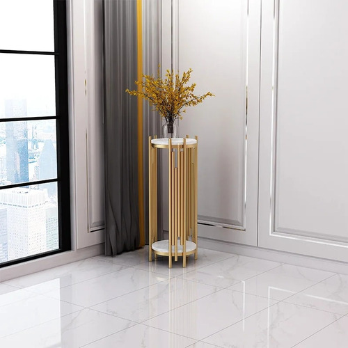 Fabricada con materiales de alta calidad, esta mesa redonda cuenta con dos repisas que ofrecen espacio adicional para exhibir tus adornos favoritos, libros o elementos decorativos, añadiendo un toque de elegancia a tu sala de estar, estudio o cualquier rincón especial.
