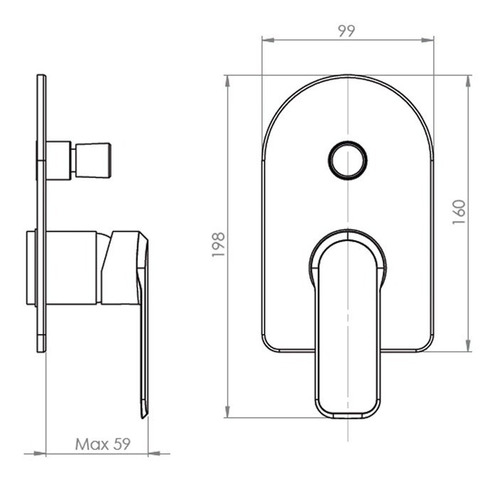 Manilla con giro en 90° que permite mezclar la temperatura del agua.