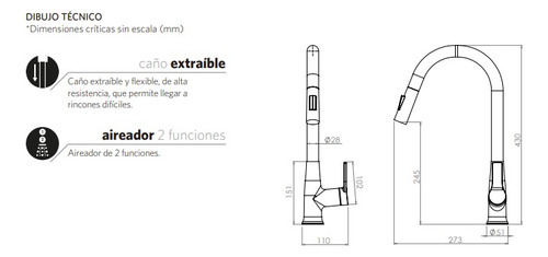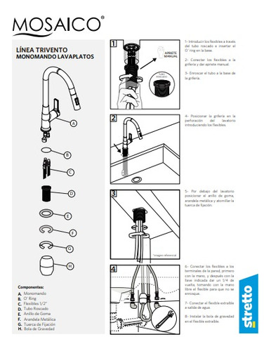 Monomando Grifo Llave Lavaplatos Fregadero Trivento Stretto