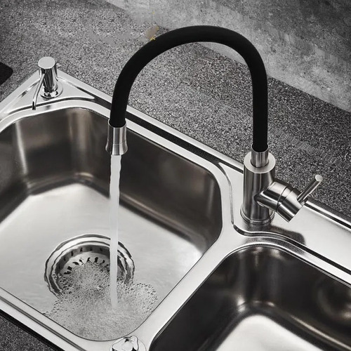 Manilla con giro en 90° que permite mezclar la temperatura del agua.