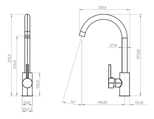 Manilla con giro en 90° que permite mezclar la temperatura del agua.