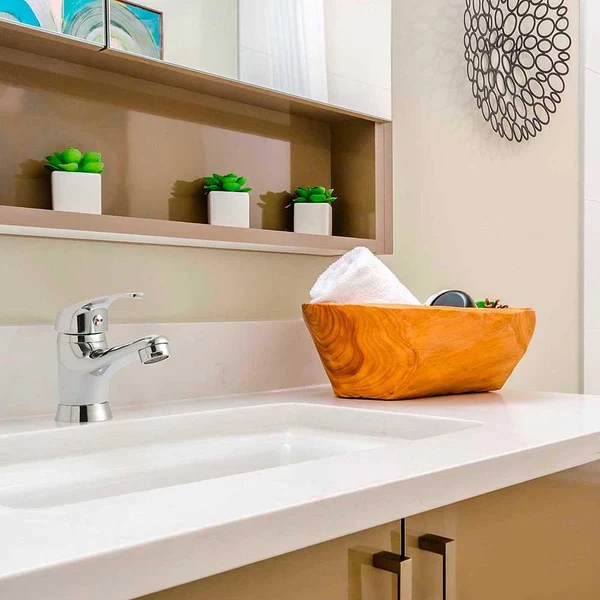 Manilla con giro en 90° que permite mezclar la temperatura del agua.