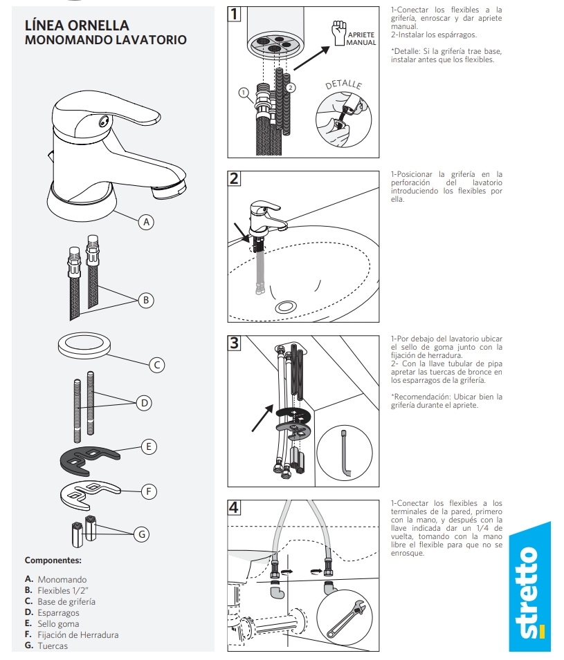 * Incluye: Set de instalación por Fast Fix, 2 flexibles Technoflex
