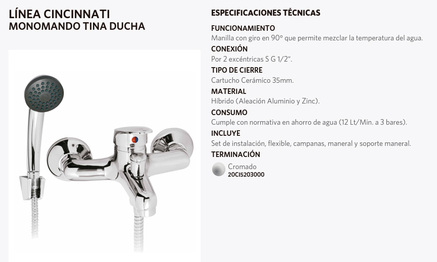 CONSUMO: Cumple con normativa en ahorro de agua (12 Lt/Min. a 3 bares).