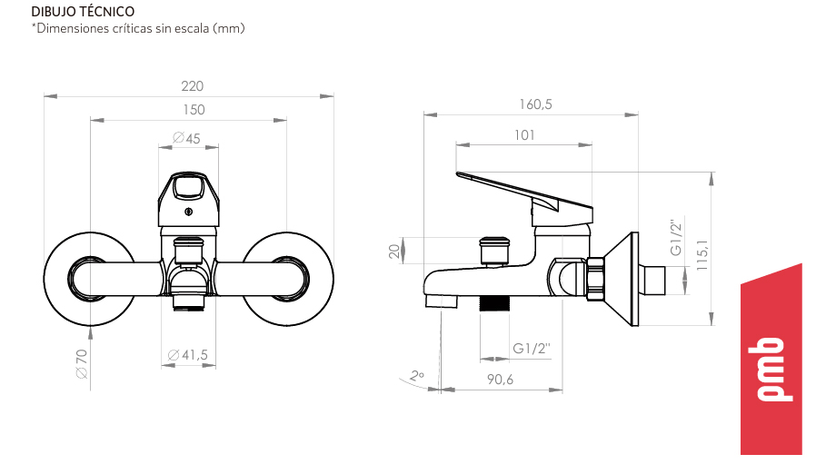 FUNCIONAMIENTO: Manilla con giro en 90° que permite mezclar la temperatura del agua.