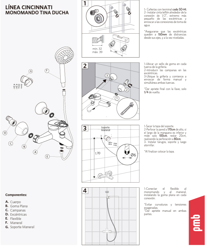 INCLUYE: Set de instalación, flexible, campanas, maneral y soporte maneral.