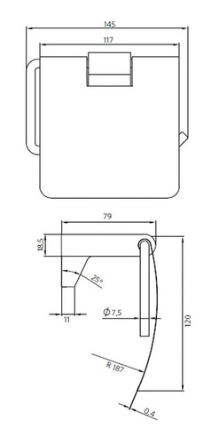 Porta rollo que posee al final del brazo un lateral vertical que se encarga