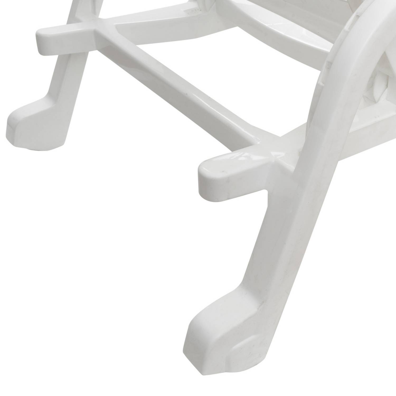Está fabricado en resina de color blanco, resistente y cómodo. la reposera de marca Reyplast se puede plegar completamente para facilitar su traslado donde tú necesitas.