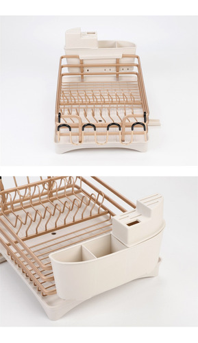 Es ideal para acomodar y escurrir tus utensilios de cocina de la mejor manera, organizada y segura, ya que tiene el tamaño perfecto, y por supuesto te permite ahorrar espacio, además de tener los espacios perfectos para acomodar y escurrir tus accesorios de cocina, tales como platos, tazas, cubiertos y vasos ya que tiene ganchos extras para ellos.