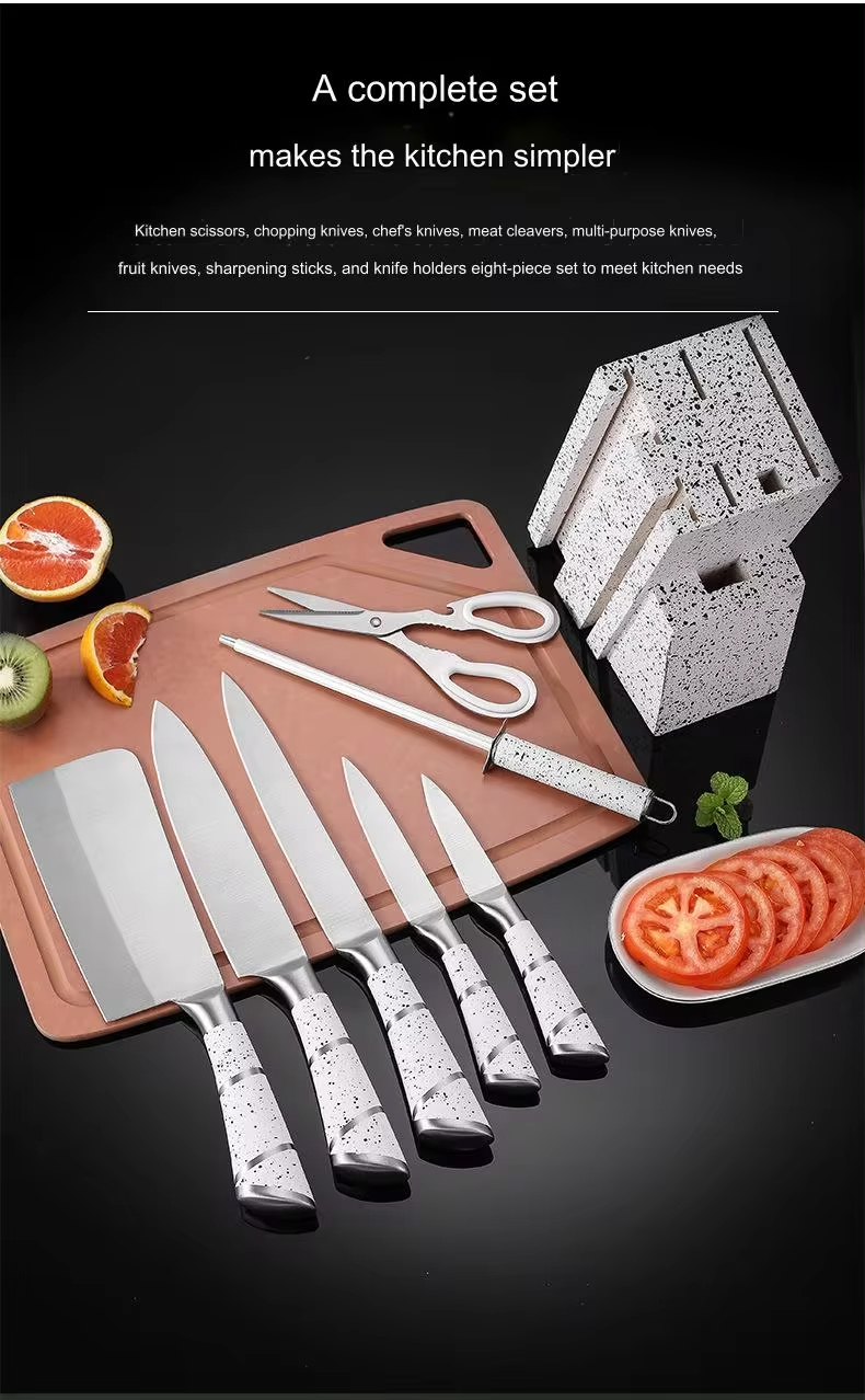 Eleva tu experiencia culinaria con este set de cuchillos de 8 piezas, diseñado para combinar estilo y funcionalidad en tu cocina. Ideal para chefs profesionales y aficionados, este set te proporcionará las herramientas necesarias para realizar cortes perfectos.