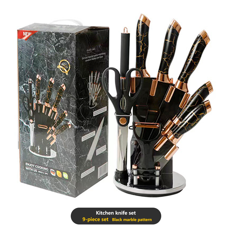 Set De Cuchillos Premium 9 Piezas Con Soporte Giratorio Marmoleado