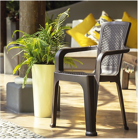 Está pensada para ser usada al aire libre, está fabricada en resina, un material muy resistente a los rayos solares y al agua. Estas características la hacen un producto ideal para ser utilizado al aire libre, ya sea en el jardín o en balcón.