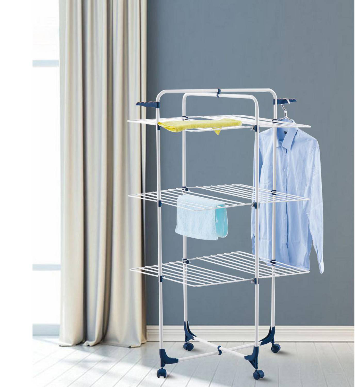 El Tendedero de torre con 3 niveles pintado, marca Drying Racks, ofrece una nueva forma de optimizar tus espacios cuando se trata de secar la ropa, sin perder eficiencia en esa tarea.