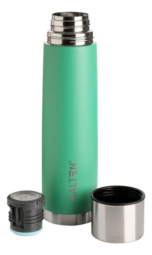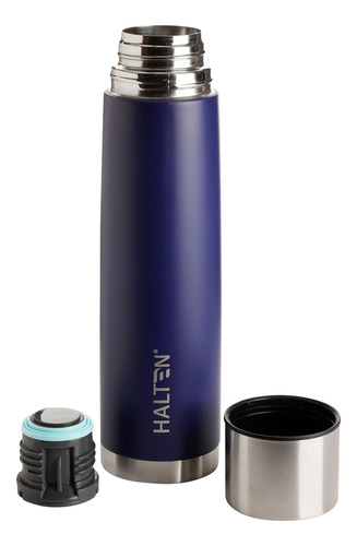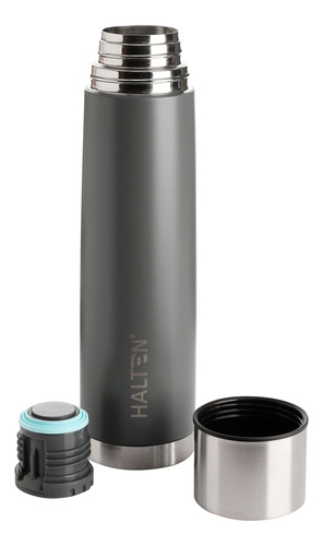 Termo Bala Halten 1,0lt, cuenta con doble pared de Acero. Mantiene la temperatura de aguas 8 horas caliente y 24 horas frío. Cómodo y fácil de transportar, para verter el agua basta solo con pulsar el botón.