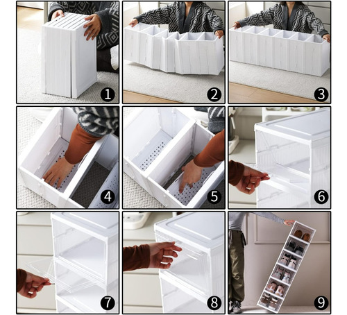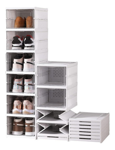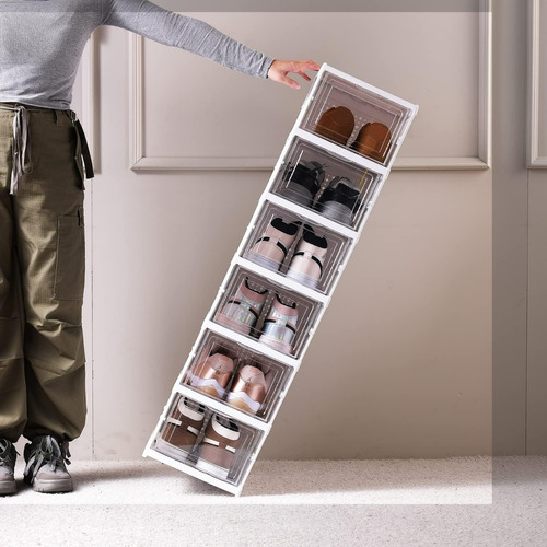 Organizador de zapatos plegable: estas cajas de zapatos apilables de plástico transparente son un cambio de juego para tus problemas de almacenamiento de zapatos. te proporciona comodidad y comodidad para guardar cada par.